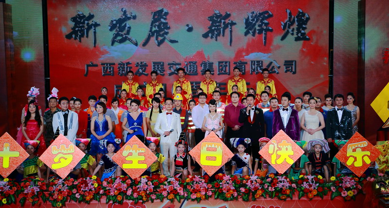 3月18日,“新發(fā)展?新輝煌”集團(tuán)公司十周年慶典文藝匯演在廣西交通職業(yè)技術(shù)學(xué)院大禮堂舉行。自治區(qū)總工會、區(qū)直機(jī)關(guān)工委、國土廳國土規(guī)劃院等區(qū)直有關(guān)部門,自治區(qū)交通運(yùn)輸廳各部門、直屬各單位,廣西交投集團(tuán)、廣西建工集團(tuán)、廣西建筑業(yè)聯(lián)合會、各大銀行等有關(guān)單位的領(lǐng)導(dǎo),以及新發(fā)展交通集團(tuán)職工代表1000多人齊聚一堂,共同慶祝集團(tuán)公司成立十周年。