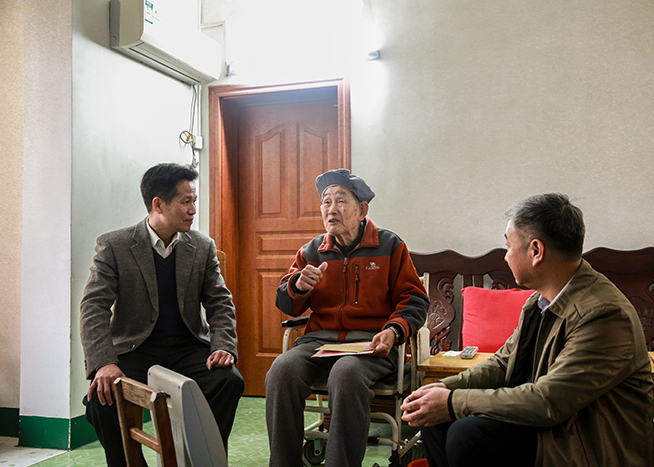 集團(tuán)公司黨委書(shū)記、董事長(zhǎng)朱堅(jiān)和(右二),紀(jì)委書(shū)記翁科(左二)一行走訪慰問(wèn)老黨員。