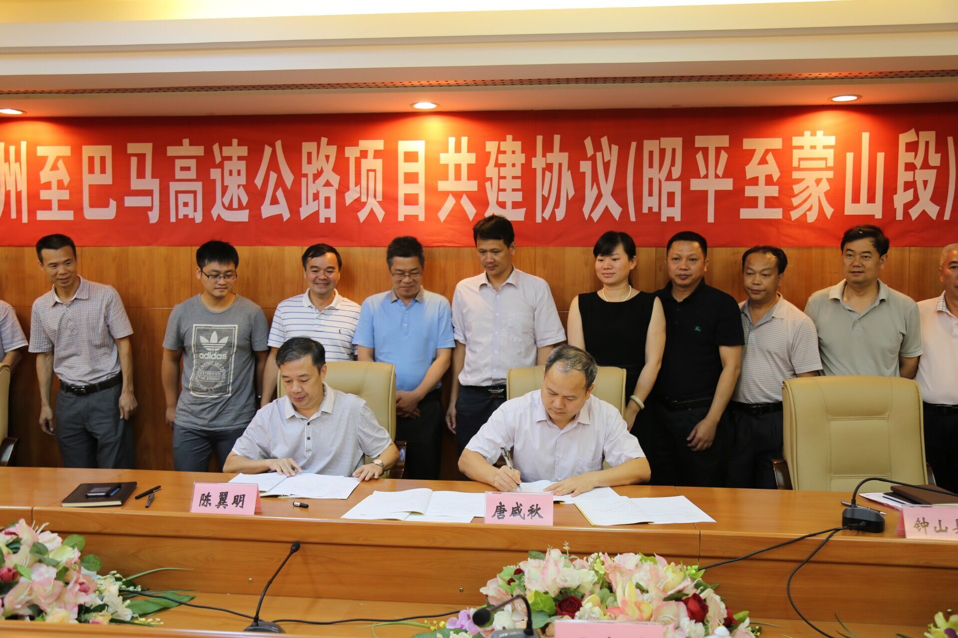 賀州市副市長(zhǎng)陳翼朋,集團(tuán)公司副董事長(zhǎng)、總經(jīng)理、黨委副書(shū)記唐咸秋,賀州市副秘書(shū)長(zhǎng)楊啟迪,集團(tuán)公司投發(fā)部部長(zhǎng)朱政敏,集團(tuán)公司直屬新恒通公司董事長(zhǎng)、總經(jīng)理馮春萌出席簽約儀式。