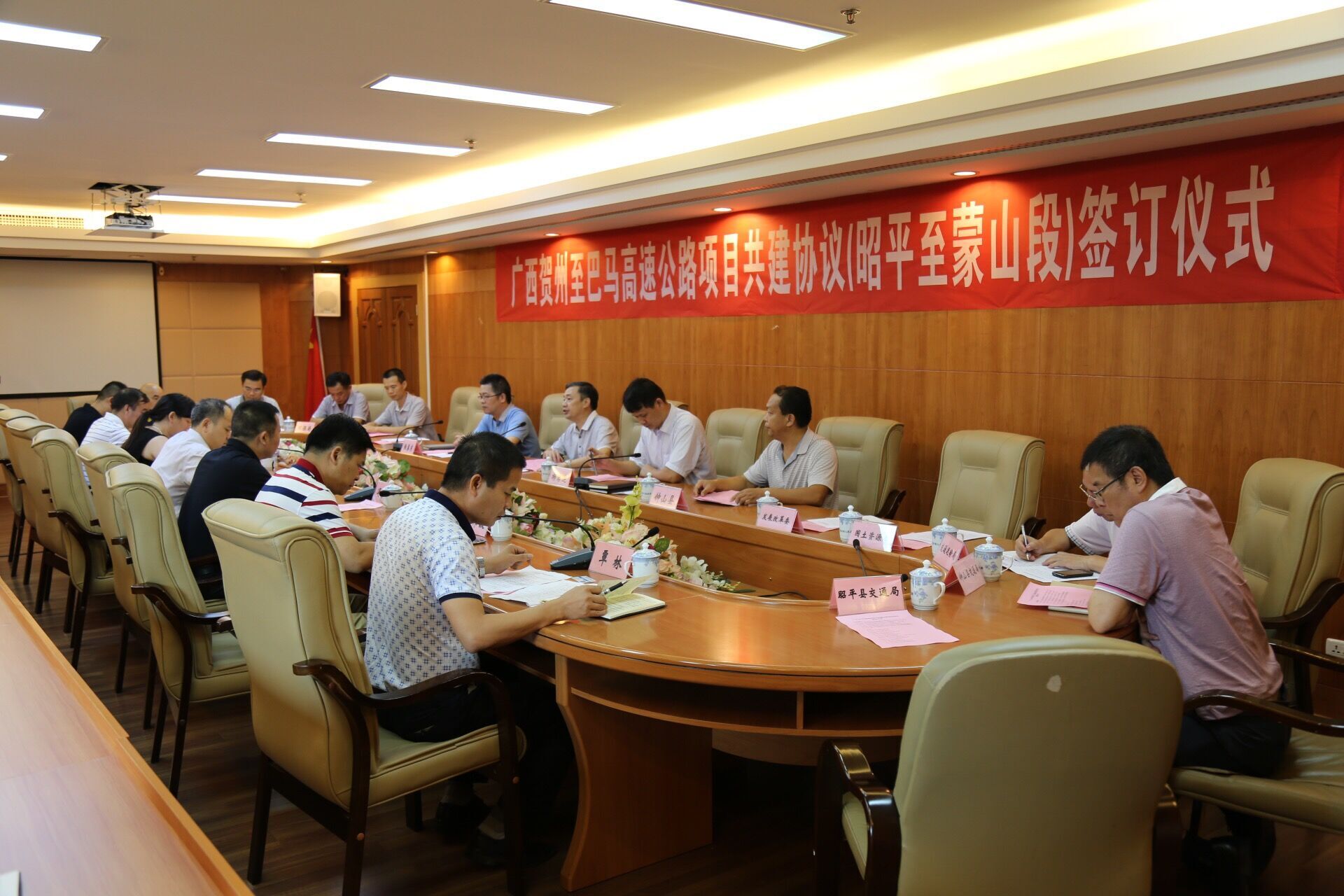 簽約儀式上,雙方就如何推動(dòng)賀州至巴馬高速公路(昭平至蒙山段)項(xiàng)目的建設(shè)工作深入交換了意見(jiàn)。賀州市領(lǐng)導(dǎo)表示,市政府各相關(guān)單位和部門(mén)會(huì)保持積極主動(dòng)的工作狀態(tài),全力以赴,克服種種困難,同時(shí)加強(qiáng)與集團(tuán)公司、新恒通公司的溝通交流,做好項(xiàng)目的征地拆遷和建設(shè)中各項(xiàng)協(xié)調(diào)工作。集團(tuán)公司領(lǐng)導(dǎo)對(duì)賀州市政府的支持與配合表示感謝,同時(shí)表示集團(tuán)公司將秉承建設(shè)綠色生態(tài)高速公路的理念,優(yōu)質(zhì)高效的完成該項(xiàng)目的投資建設(shè)。