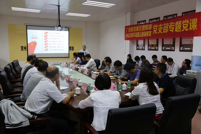 集團公司總工程師覃炳賢參加專題黨課并做發(fā)言,就如何開展好項目建設(shè)工作提出了具體要求,提出要按照“建設(shè)綠色高速,共享長壽密碼”的理念,將賀巴馬高速建設(shè)成一條旅游路、一條探尋長壽之路。