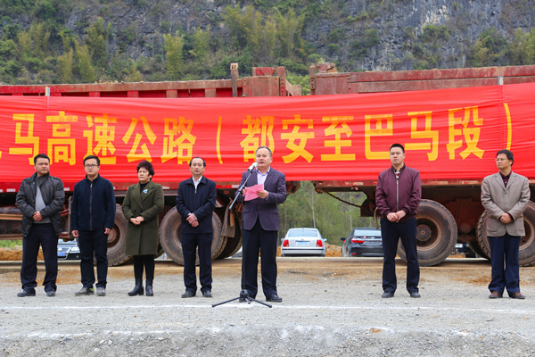 同日,賀州至巴馬高速公路(都安至巴馬段)建設(shè)指揮部正式揭牌成立,集團(tuán)公司副董事長(zhǎng)、總經(jīng)理、黨委副書記唐咸秋在揭牌儀式上對(duì)指揮部全體人員提出了殷切的期望。