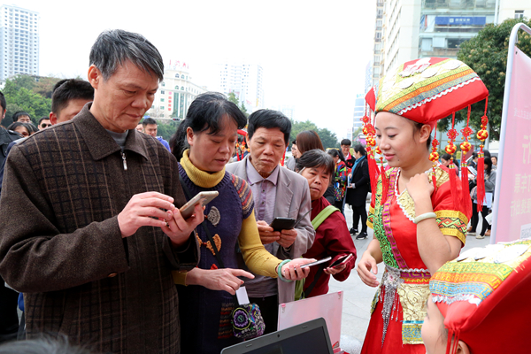 身著統(tǒng)一服裝,肩披綬帶、胸扣團(tuán)徽的ETC推廣青年突擊隊(duì)員向過往的行人宣傳ETC的相關(guān)知識,耐心解答車主朋友們的疑問,并現(xiàn)場演示ETC八桂行卡的安裝過程,使廣大社區(qū)市民對ETC有了一個(gè)初步的認(rèn)識。6名身著靚麗壯族服飾瞬間吸引住了往來市民的眼光,紛紛前來咨詢業(yè)務(wù)?;顒悠陂g,一卡通公司客服人員熱情地向社區(qū)居民發(fā)放了100張“桂民卡·體驗(yàn)卡”,亦有不少市民被桂民卡精美的版面設(shè)計(jì)和強(qiáng)大的互聯(lián)互通功能所吸引,紛紛在現(xiàn)場辦理購卡及充值業(yè)務(wù)。票通公司客服人員則向社區(qū)居民推介了廣西人自己的道路客運(yùn)網(wǎng)絡(luò)售票平臺——“桂客行”,耐心地向市民解析平臺功能、覆蓋范圍等,并協(xié)助市民下載“桂客行”手機(jī)APP。