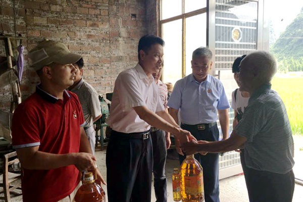 韋云忠一行還到相堯村在建的村文化活動中心實地查看,對村文化活動中心規(guī)劃及集團公司幫扶建設村文化樓等工作表示肯定。韋云忠等領導還分別深入相堯村3戶貧困戶代表進行慰問,了解貧困戶生產(chǎn)生活情況。