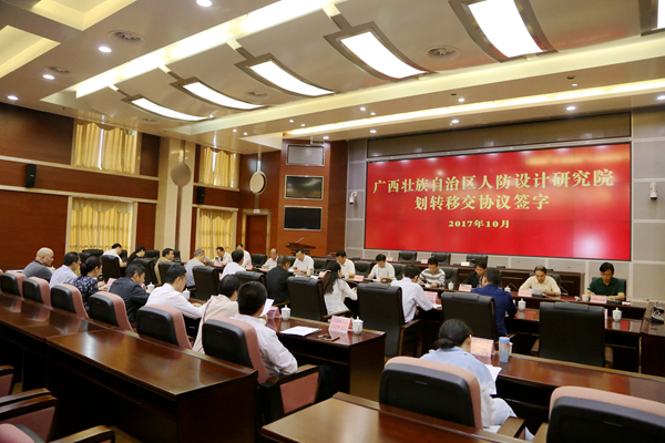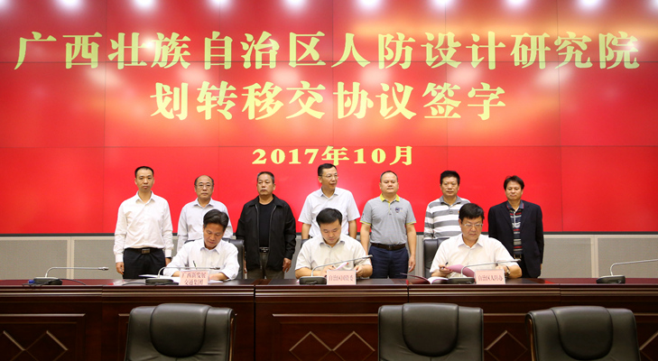 10月30日上午9時(shí),自治區(qū)國(guó)資委、自治區(qū)人防辦及廣西新發(fā)展交通集團(tuán)有限公司在自治區(qū)人防辦應(yīng)急指揮中心舉行廣西壯族自治區(qū)人防設(shè)計(jì)研究院劃轉(zhuǎn)移交協(xié)議簽字儀式,標(biāo)志著自治區(qū)人防設(shè)計(jì)院正式與自治區(qū)人防辦脫鉤,成建制劃轉(zhuǎn)移交新發(fā)展集團(tuán)管理。集團(tuán)公司黨委書記、董事長(zhǎng)朱堅(jiān)和,黨委副書記、副董事長(zhǎng)、總經(jīng)理唐咸秋,黨委副書記、董事、工會(huì)主席張友坐及集團(tuán)公司辦公室、投資改革發(fā)展部、人力資源部、黨群工作部、法律事務(wù)部等部門主要負(fù)責(zé)人參加簽字儀式。
