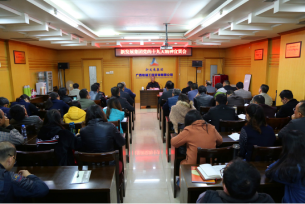 為使黨的十九大精神深入基層、深入人心,11月27日,集團公司紀委書記翁科到桂通公司宣講黨的十九大精神。桂通公司總部全體人員、分公司、南寧周邊項目員工參加學(xué)習(xí)。