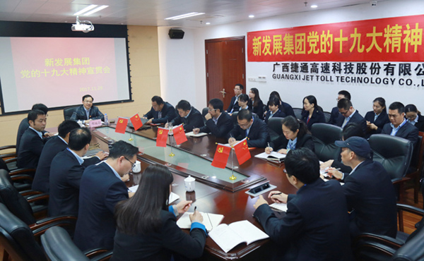 11月28日上午,集團公司總會計師鄧遠志來到捷通公司宣講黨的十九大精神,并開展工作調研。捷通公司黨總支班子及總部人員和南寧市自營網點負責人近70人參加了學習。