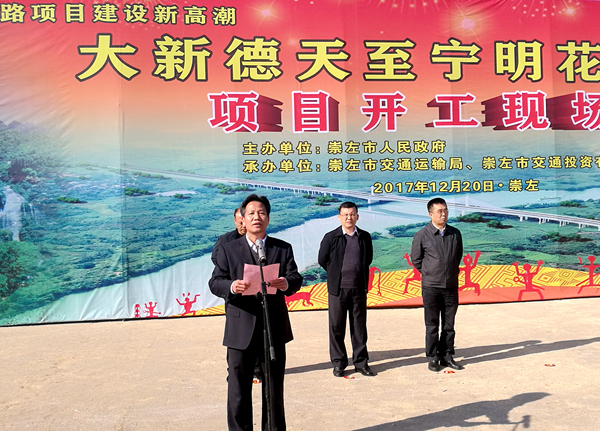 12月20日,崇左市大新德天至寧明花山公路舉行開工儀式,集團(tuán)公司黨委書記、董事長朱堅和,集團(tuán)公司黨委副書記、副董事長、總經(jīng)理唐咸秋,路橋工程集團(tuán)及設(shè)計院有限公司相關(guān)負(fù)責(zé)人參加了開工儀式。