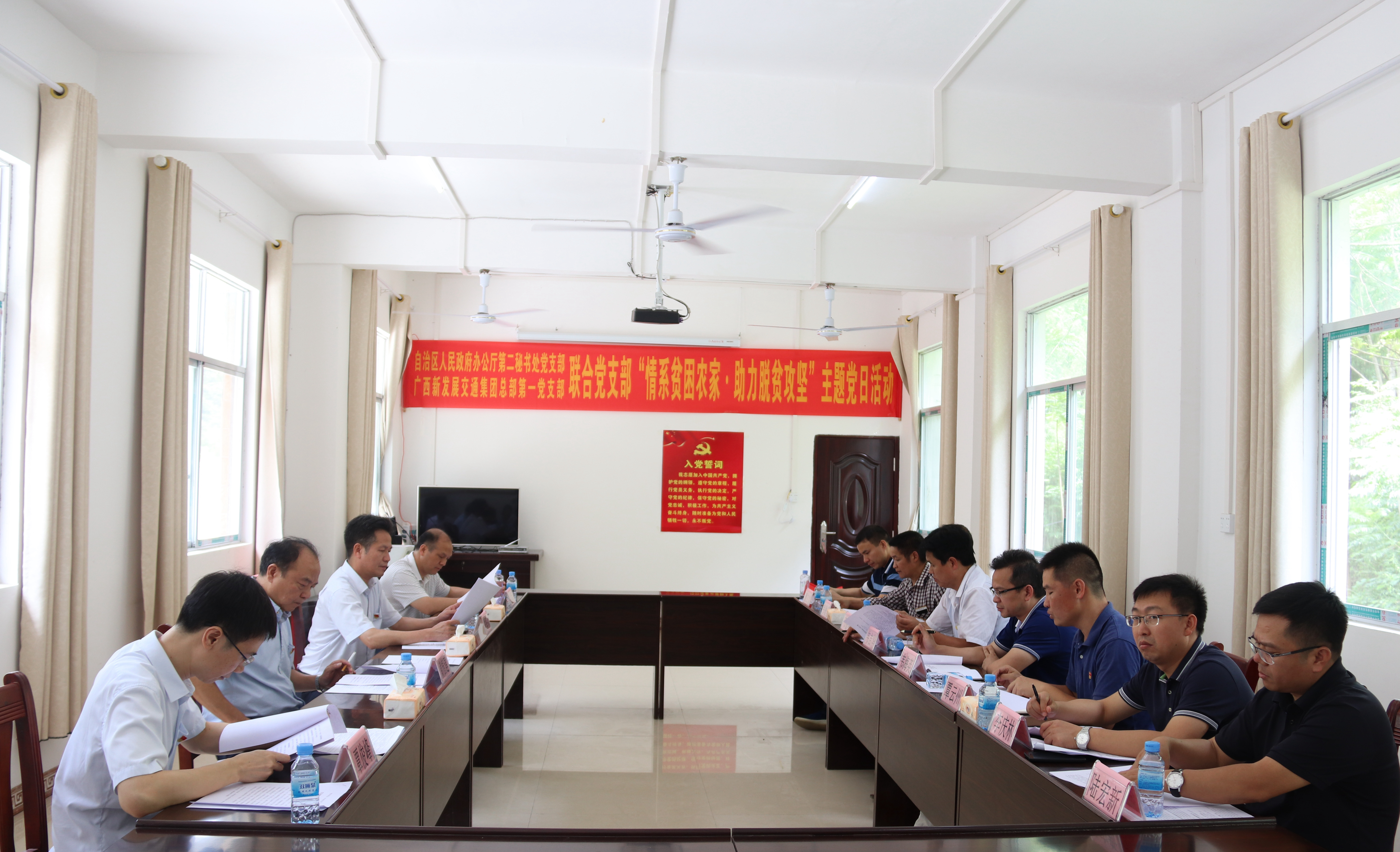 在七一建黨節(jié)到來(lái)之際,為表達(dá)自治區(qū)政府對(duì)貧困戶的關(guān)懷,激勵(lì)貧困戶燃起脫貧信心,致力脫貧,6月29日,自治區(qū)政府辦公廳第二秘書處黨支部和集團(tuán)總部黨支部在自治區(qū)人民政府副秘書長(zhǎng)黃植建,集團(tuán)公司黨委書記、董事長(zhǎng)朱堅(jiān)和的帶領(lǐng)下深入大化瑤族自治縣雅龍鄉(xiāng)紅日村,對(duì)12戶貧困戶進(jìn)行了走訪慰問,并舉行座談會(huì)。