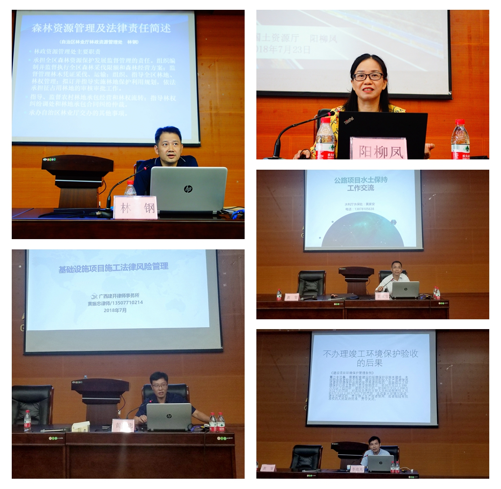 此次培訓(xùn)邀請(qǐng)了自治區(qū)國(guó)土資源廳規(guī)劃處副處長(zhǎng)陽(yáng)柳鳳、林業(yè)廳林政處副處長(zhǎng)林鋼、環(huán)境保護(hù)廳環(huán)評(píng)處處長(zhǎng)李亮光、水利廳水土保持處副處長(zhǎng)黃家安以及廣西建開律師事務(wù)所主任黃振忠律師5位專家圍繞項(xiàng)目建設(shè)過程中的國(guó)土、林地、環(huán)境保護(hù)、水土保持以及項(xiàng)目經(jīng)營(yíng)常見法律政策問題進(jìn)行專題授課。此次培訓(xùn)緊貼建設(shè)項(xiàng)目管理的實(shí)際需求,內(nèi)容豐富,針對(duì)性強(qiáng)。通過培訓(xùn),提高了廣大建設(shè)項(xiàng)目管理人員的法律政策水平,增強(qiáng)了處理具體法律問題的能力,對(duì)今后依法依規(guī)建設(shè)項(xiàng)目起到很好的促進(jìn)作用。