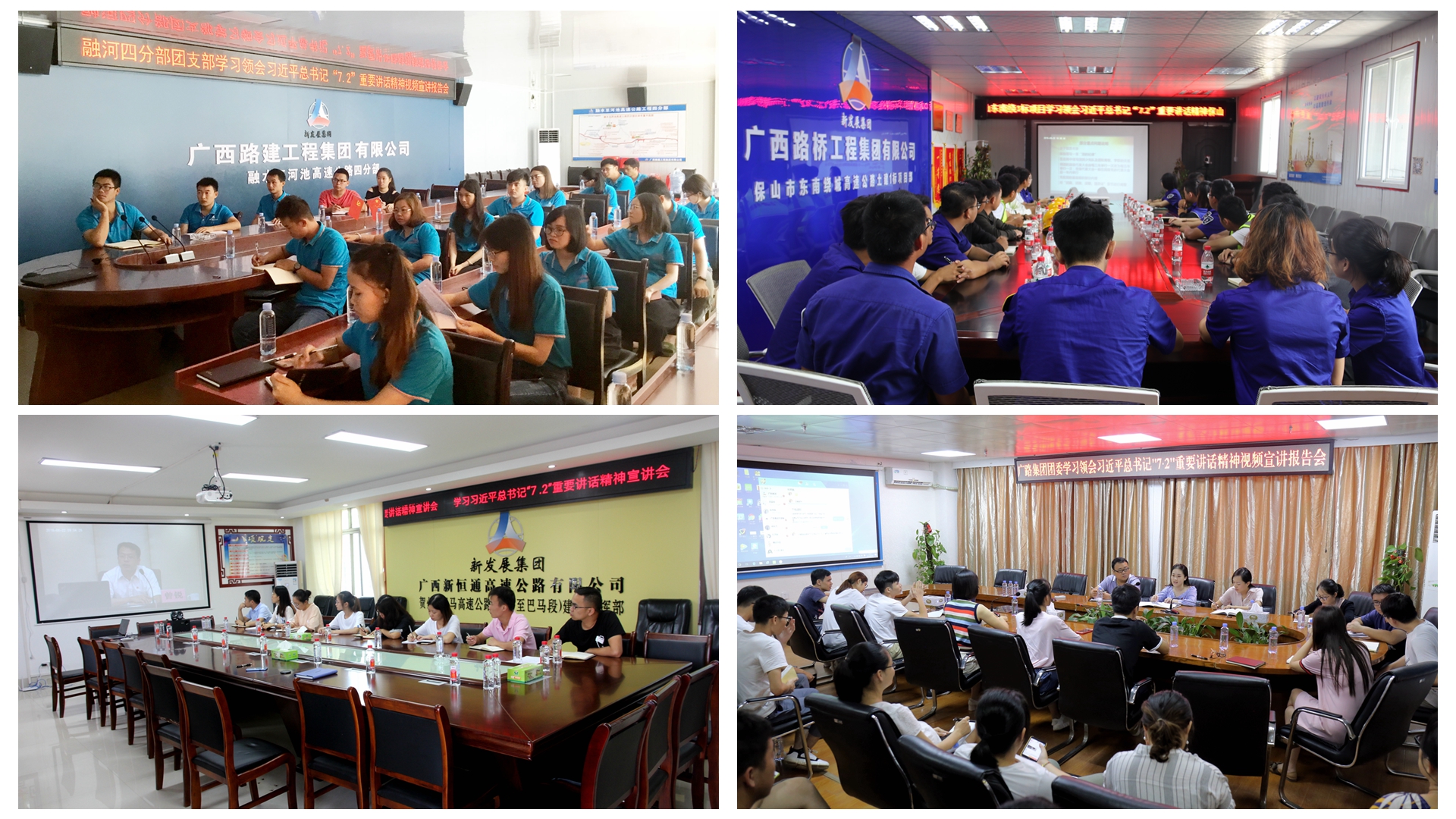 8月22日,集團(tuán)公司團(tuán)委組織總部、交通設(shè)計(jì)公司、翔路公司、小額貸公司、捷通公司、交通一卡通公司青年團(tuán)員集中觀看團(tuán)中央關(guān)于“學(xué)習(xí)領(lǐng)會(huì)習(xí)近平總書(shū)記‘7.2’重要講話精神視頻宣講報(bào)告會(huì)”直播視頻。廣西路橋、廣西路建、交通設(shè)計(jì)公司、交科院公司、廣路實(shí)業(yè)、翔路公司、新恒通公司、桂通公司等相應(yīng)組織生產(chǎn)一線的各級(jí)團(tuán)組織收看直播活動(dòng)。經(jīng)統(tǒng)計(jì),有109個(gè)團(tuán)組織共組織了127場(chǎng)集中收看活動(dòng),1652名團(tuán)員青年集中收看報(bào)告會(huì)直播。