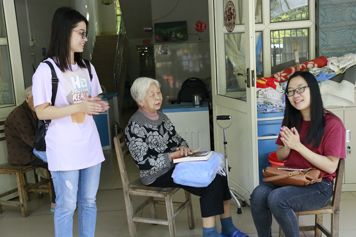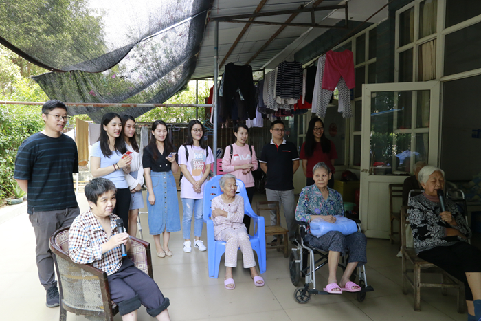 志愿者們圍坐在老人旁邊,詢問(wèn)他們的生活情況、身體情況,叮囑他們注意保暖、保重身體,傾聽(tīng)他們的人生故事和叮嚀告誡,并為給他們唱紅歌、讀故事、講新聞,豐富他們的精神生活。老人們對(duì)志愿者的到來(lái)感到十分高興,和志愿者一起合唱《團(tuán)結(jié)就是力量》、《歌唱祖國(guó)》、《沒(méi)有共產(chǎn)黨就沒(méi)有新中國(guó)》等歌曲。護(hù)老院處處洋溢著歡樂(lè)的氣氛,老人們的臉上洋溢著幸福。